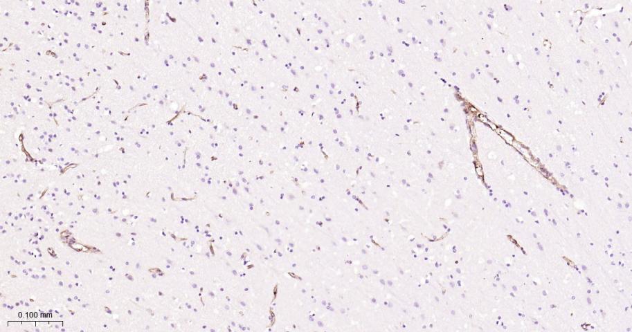 Paraformaldehyde-fixed, paraffin embedded Human Cerebrum; Antigen retrieval by boiling in sodium citrate buffer (pH6.0) for 15 min; The section was incubated with Integrin alpha 5 Monoclonal Antibody, Unconjugated (bsm-61357R) at 1:200 overnight at 4°C, followed by conjugation to the bs-0295G-HRP and DAB (C-0010) staining.