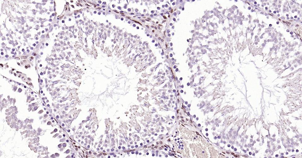 Paraformaldehyde-fixed, paraffin embedded Rat Testicles; Antigen retrieval by boiling in sodium citrate buffer (pH6.0) for 15 min; Antibody incubation with E2F1 Monoclonal Antibody, Unconjugated(bsm-61369R) at 1:200 overnight at 4°C, followed by conjugation to the SP Kit (Rabbit, SP-0023)and DAB (C-0010) staining.