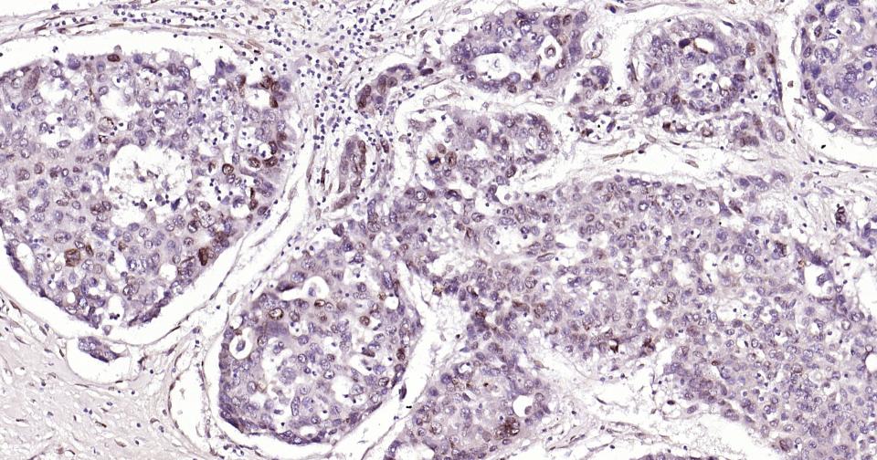 Paraformaldehyde-fixed, paraffin embedded Human Liver Cancer; Antigen retrieval by boiling in sodium citrate buffer (pH6.0) for 15 min; Antibody incubation with E2F1 Monoclonal Antibody, Unconjugated(bsm-61369R) at 1:200 overnight at 4°C, followed by conjugation to the SP Kit (Rabbit, SP-0023)and DAB (C-0010) staining.