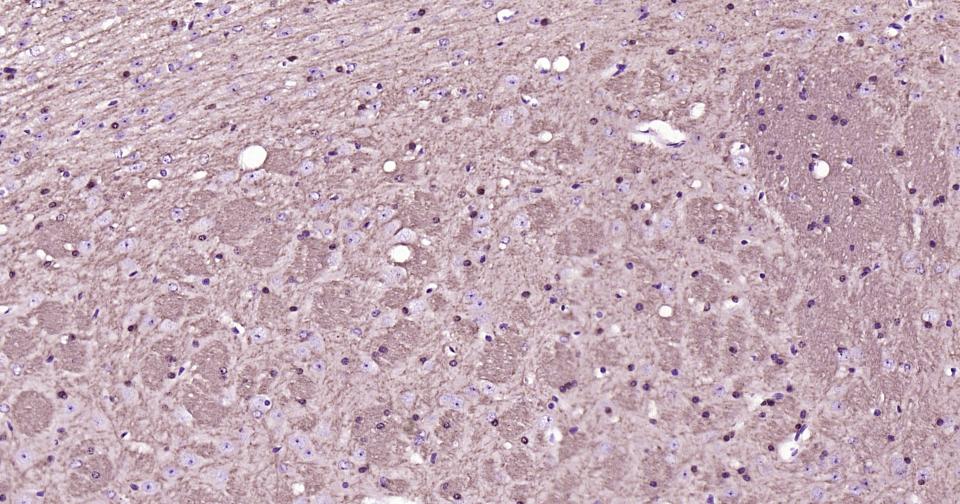 Paraformaldehyde-fixed, paraffin embedded Human Cerebellum; Antigen retrieval by boiling in sodium citrate buffer (pH6.0) for 15 min; Antibody incubation with CNPase Monoclonal Antibody, Unconjugated(bsm-61411R) at 1:200 overnight at 4°C, followed by conjugation to the bs-0295G-HRP and DAB (C-0010) staining.