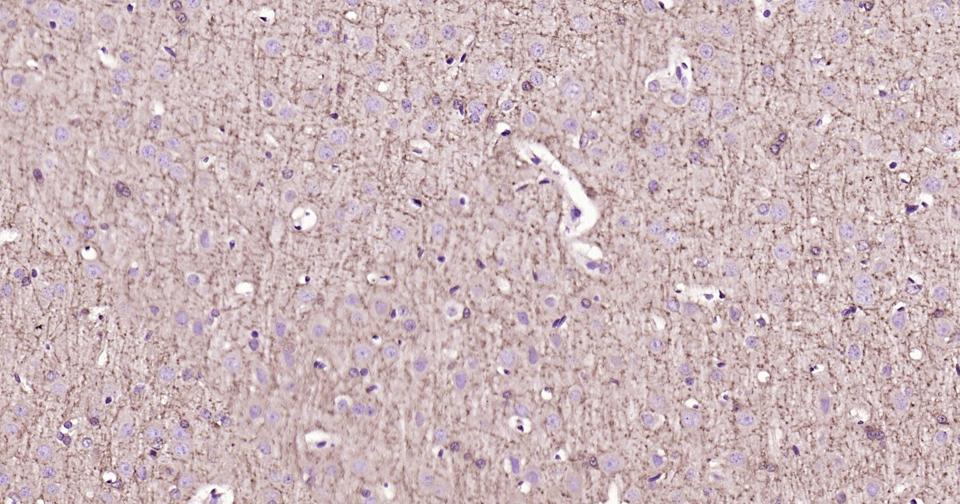 Paraformaldehyde-fixed, paraffin embedded Rat Cerebrum; Antigen retrieval by boiling in sodium citrate buffer (pH6.0) for 15 min; Antibody incubation with CNPase Monoclonal Antibody, Unconjugated(bsm-61411R) at 1:200 overnight at 4°C, followed by conjugation to the bs-0295G-HRP and DAB (C-0010) staining.