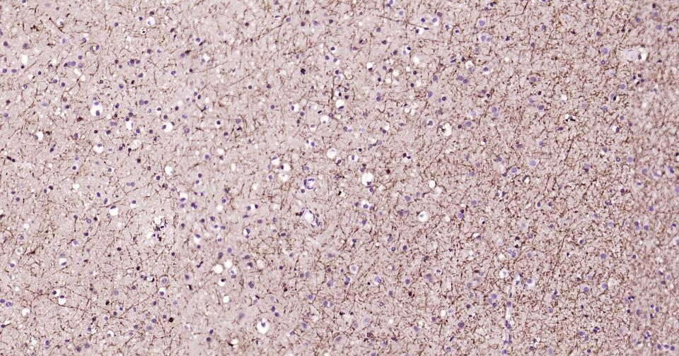 Paraformaldehyde-fixed, paraffin embedded Human Cerebrum; Antigen retrieval by boiling in sodium citrate buffer (pH6.0) for 15 min; Antibody incubation with CNPase Monoclonal Antibody, Unconjugated(bsm-61411R) at 1:200 overnight at 4°C, followed by conjugation to the bs-0295G-HRP and DAB (C-0010) staining.