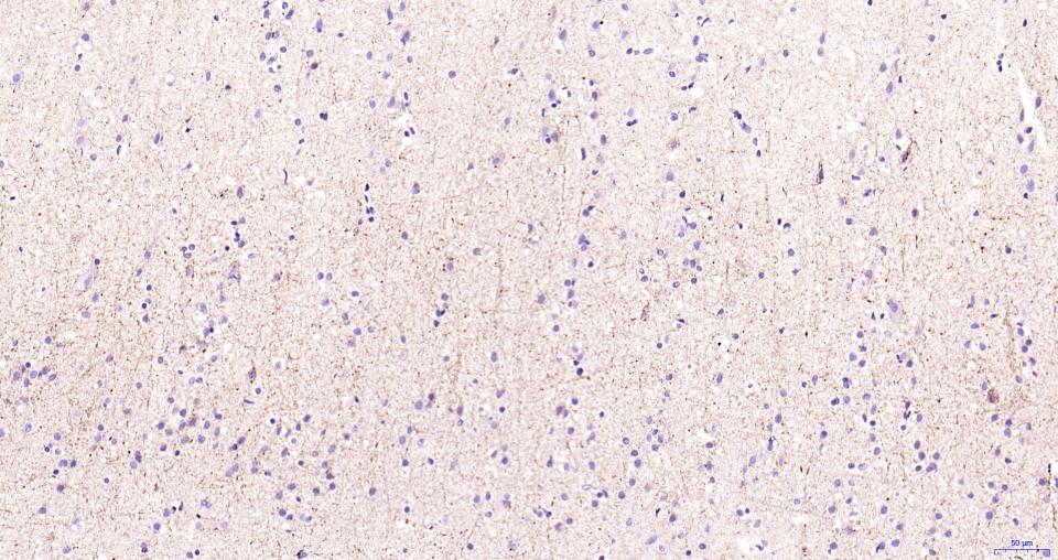 (Negative control)Paraformaldehyde-fixed, paraffin embedded Human Brain; Antigen retrieval by boiling in sodium citrate buffer (pH6.0) for 15 min; Antibody incubation with TAC1 Monoclonal Antibody, Unconjugated (bsm-61420R) at 1:200 overnight at 4°C, followed by conjugation to the bs-0295G-HRP and DAB (C-0010) staining.
