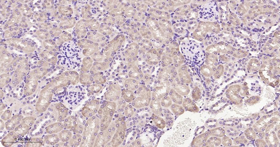 Paraformaldehyde-fixed, paraffin embedded Mouse Kidney; Antigen retrieval by boiling in sodium citrate buffer (pH6.0) for 15 min; Antibody incubation with SDHA Monoclonal Antibody, Unconjugated(bsm-61435R) at 1:200 overnight at 4°C, followed by conjugation to the bs-0295G-HRP and DAB (C-0010) staining.