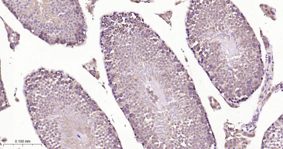 Paraformaldehyde-fixed, paraffin embedded Mouse Testicles; Antigen retrieval by boiling in sodium citrate buffer (pH6.0) for 15 min; Antibody incubation with SDHA Monoclonal Antibody, Unconjugated(bsm-61435R) at 1:200 overnight at 4°C, followed by conjugation to the bs-0295G-HRP and DAB (C-0010) staining.