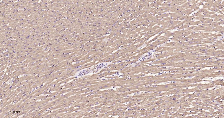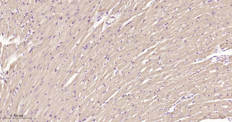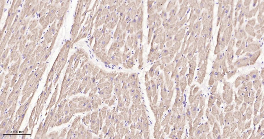 Paraformaldehyde-fixed, paraffin embedded Rat Heart; Antigen retrieval by boiling in sodium citrate buffer (pH6.0) for 15 min; Antibody incubation with SDHA Monoclonal Antibody, Unconjugated(bsm-61435R) at 1:200 overnight at 4°C, followed by conjugation to the bs-0295G-HRP and DAB (C-0010) staining.
