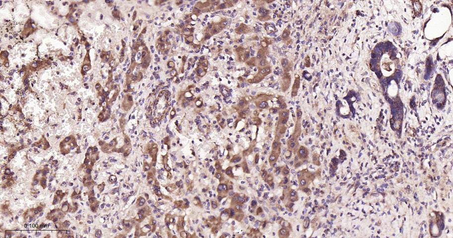 Paraformaldehyde-fixed, paraffin embedded Human Liver; Antigen retrieval by boiling in sodium citrate buffer (pH6.0) for 15 min; Antibody incubation with SDHA Monoclonal Antibody, Unconjugated(bsm-61435R) at 1:200 overnight at 4°C, followed by conjugation to the bs-0295G-HRP and DAB (C-0010) staining.