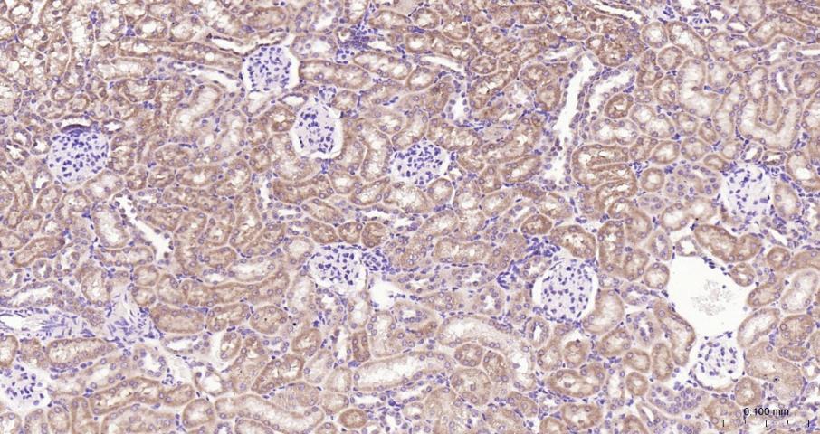 Paraformaldehyde-fixed, paraffin embedded Mouse kidney; Antigen retrieval by boiling in sodium citrate buffer (pH6.0) for 15 min; Antibody incubation with BNIP3 Monoclonal Antibody, Unconjugated(bsm-61440R) at 1:200 overnight at 4°C, followed by conjugation to the bs-0295G-HRP and DAB (C-0010) staining.