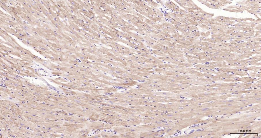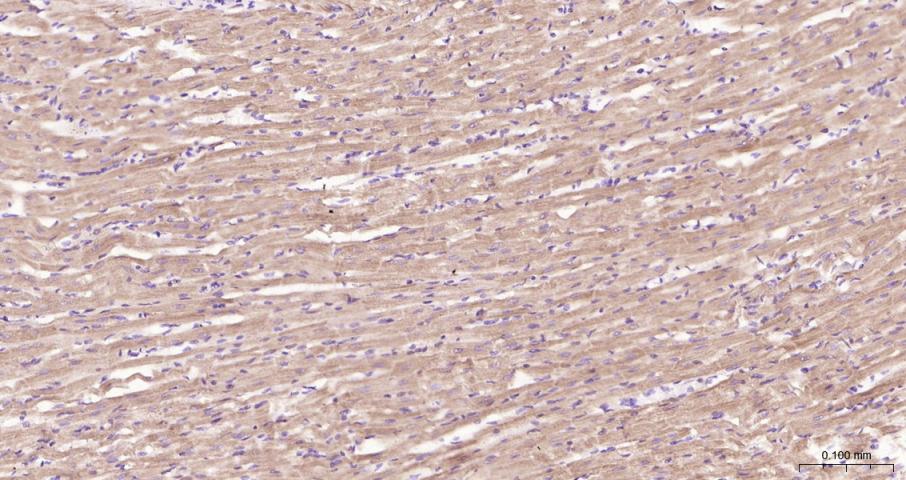 Paraformaldehyde-fixed, paraffin embedded Rat heart; Antigen retrieval by boiling in sodium citrate buffer (pH6.0) for 15 min; Antibody incubation with BNIP3 Monoclonal Antibody, Unconjugated(bsm-61440R) at 1:200 overnight at 4°C, followed by conjugation to the bs-0295G-HRP and DAB (C-0010) staining.