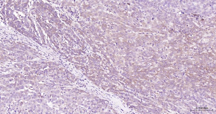 Paraformaldehyde-fixed, paraffin embedded Human ovarian cancer; Antigen retrieval by boiling in sodium citrate buffer (pH6.0) for 15 min; Antibody incubation with BNIP3 Monoclonal Antibody, Unconjugated(bsm-61440R) at 1:200 overnight at 4°C, followed by conjugation to the bs-0295G-HRP and DAB (C-0010) staining.