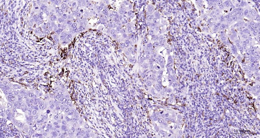 Paraformaldehyde-fixed, paraffin embedded Human Breast Cancer; Antigen retrieval by boiling in sodium citrate buffer (pH6.0) for 15 min; Antibody incubation with Cathepsin B Monoclonal Antibody, Unconjugated(bsm-61441R) at 1:200 overnight at 4°C, followed by conjugation to the bs-0295G-HRP and DAB (C-0010) staining.