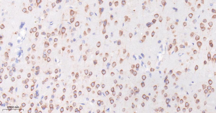 Paraformaldehyde-fixed, paraffin embedded Rat Cerebrum; Antigen retrieval by boiling in sodium citrate buffer (pH6.0) for 15 min; Antibody incubation with FMR1 Monoclonal Antibody, Unconjugated(bsm-61466R) at 1:100 overnight at 4°C, followed by conjugation to the bs-0295G-HRP and DAB (C-0010) staining.