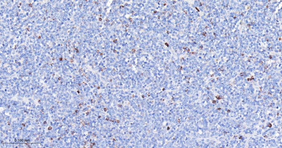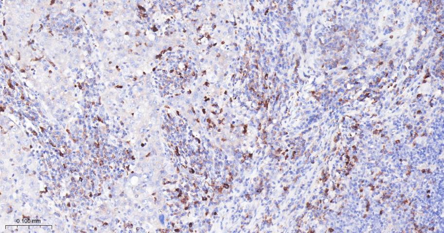 Paraformaldehyde-fixed, paraffin embedded Human Lymph; Antigen retrieval by boiling in sodium citrate buffer (pH6.0) for 15 min; Antibody incubation with cIAP1 Monoclonal Antibody, Unconjugated(bsm-61518R) at 1:200 overnight at 4°C, followed by conjugation to the bs-0295G-HRP and DAB (C-0010) staining.
