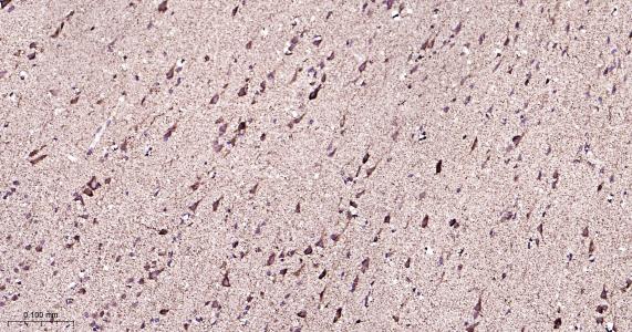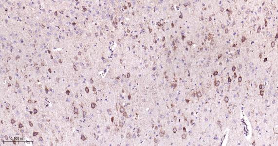 Paraformaldehyde-fixed, paraffin embedded Rat Cerebrum; Antigen retrieval by boiling in sodium citrate buffer (pH6.0) for 15 min; Antibody incubation with HSD17B10 Monoclonal Antibody, Unconjugated(bsm-61523R) at 1:200 overnight at 4°C, followed by conjugation to the bs-0295G-HRP and DAB (C-0010) staining.