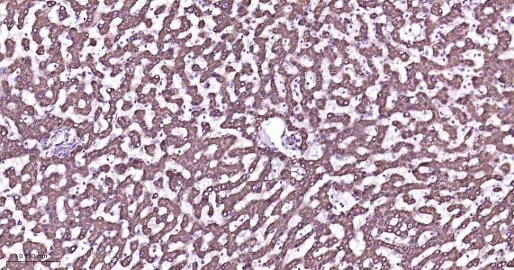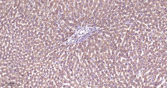 Paraformaldehyde-fixed, paraffin embedded Rat Liver; Antigen retrieval by boiling in sodium citrate buffer (pH6.0) for 15 min; Antibody incubation with HSD17B10 Monoclonal Antibody, Unconjugated(bsm-61523R) at 1:200 overnight at 4°C, followed by conjugation to the bs-0295G-HRP and DAB (C-0010) staining.