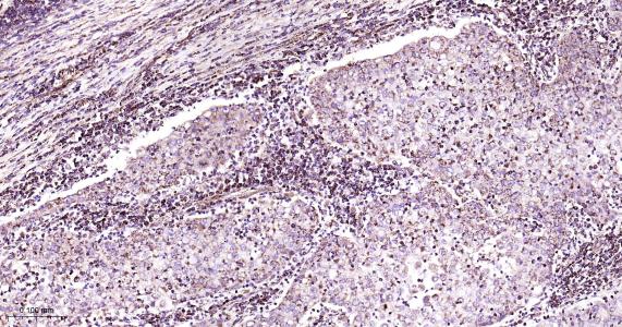Paraformaldehyde-fixed, paraffin embedded Human Liver; Antigen retrieval by boiling in sodium citrate buffer (pH6.0) for 15 min; Antibody incubation with HSD17B10 Monoclonal Antibody, Unconjugated(bsm-61523R) at 1:200 overnight at 4°C, followed by conjugation to the bs-0295G-HRP and DAB (C-0010) staining.