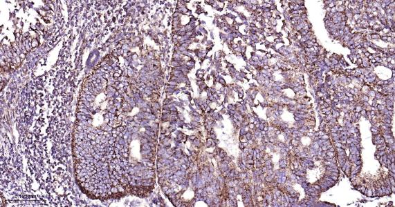 Paraformaldehyde-fixed, paraffin embedded Human Endometrial Cancer; Antigen retrieval by boiling in sodium citrate buffer (pH6.0) for 15 min; Antibody incubation with HSD17B10 Monoclonal Antibody, Unconjugated(bsm-61523R) at 1:200 overnight at 4°C, followed by conjugation to the bs-0295G-HRP and DAB (C-0010) staining.