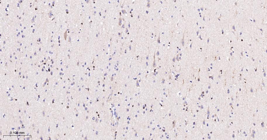 Paraformaldehyde-fixed, paraffin embedded Human Cerebrum; Antigen retrieval by boiling in sodium citrate buffer (pH6.0) for 15 min; The section was incubated with RASSF1A Monoclonal Antibody, Unconjugated (bsm-61576R) at 1:200 overnight at 4°C, followed by conjugation to the bs-0295G-HRP and DAB (C-0010) staining.