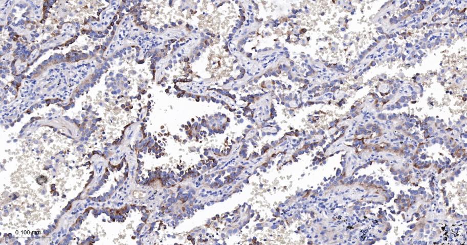 Paraformaldehyde-fixed, paraffin embedded Human Lung Cancer; Antigen retrieval by boiling in sodium citrate buffer (pH6.0) for 15 min; The section was incubated with RASSF1A Monoclonal Antibody, Unconjugated (bsm-61576R) at 1:200 overnight at 4°C, followed by conjugation to the bs-0295G-HRP and DAB (C-0010) staining.