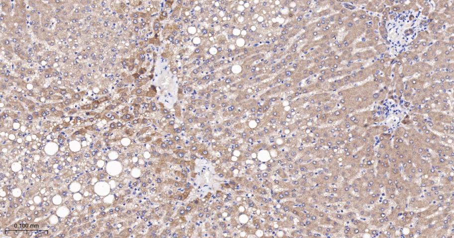 Paraformaldehyde-fixed, paraffin embedded Human Liver; Antigen retrieval by boiling in sodium citrate buffer (pH6.0) for 15 min; The section was incubated with RASSF1A Monoclonal Antibody, Unconjugated (bsm-61576R) at 1:200 overnight at 4°C, followed by conjugation to the bs-0295G-HRP and DAB (C-0010) staining.