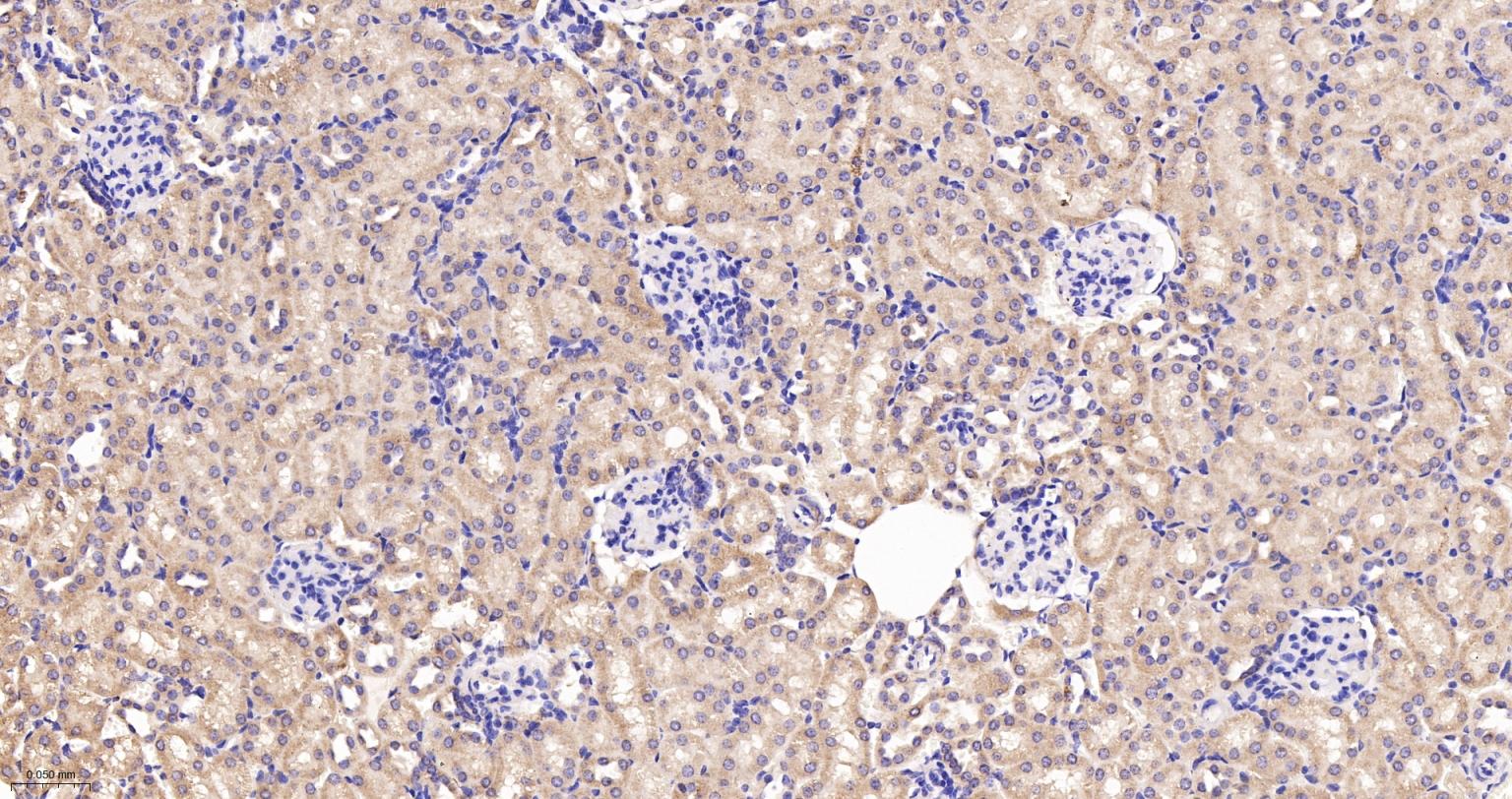 Paraformaldehyde-fixed, paraffin embedded Mouse Kidney; Antigen retrieval by boiling in sodium citrate buffer (pH6.0) for 15 min; The section was incubated with IDH2 Monoclonal Antibody, Unconjugated (bsm-61585R) at 1:200 overnight at 4°C, followed by conjugation to the bs-0295G-HRP and DAB (C-0010) staining.
