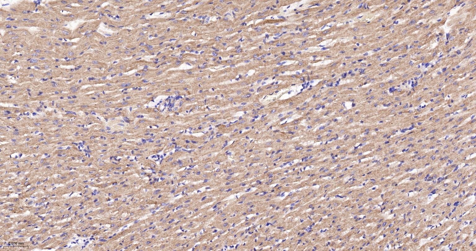 Paraformaldehyde-fixed, paraffin embedded Rat Heart; Antigen retrieval by boiling in sodium citrate buffer (pH6.0) for 15 min; The section was incubated with IDH2 Monoclonal Antibody, Unconjugated (bsm-61585R) at 1:200 overnight at 4°C, followed by conjugation to the bs-0295G-HRP and DAB (C-0010) staining.