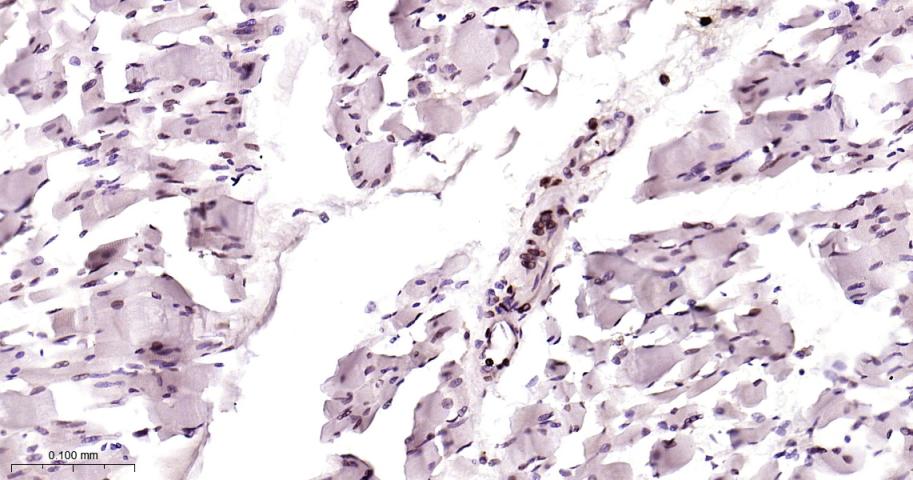 Paraformaldehyde-fixed, paraffin embedded Human Skeletal muscle; Antigen retrieval by boiling in sodium citrate buffer (pH6.0) for 15 min; Antibody incubation with Emerin Monoclonal Antibody, Unconjugated(bsm-61601R) at 1:200 overnight at 4°C, followed by conjugation to the bs-0295G-HRP and DAB (C-0010) staining.