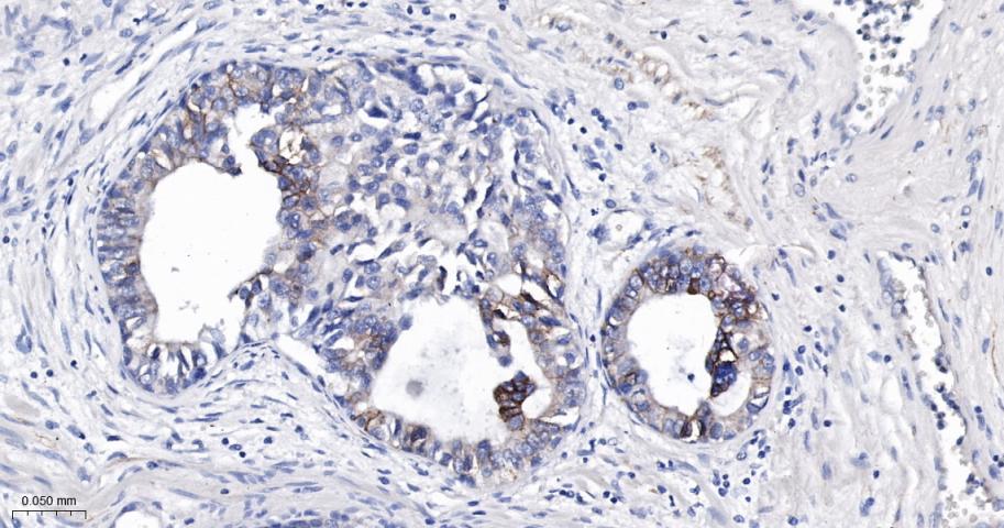 Paraformaldehyde-fixed, paraffin embedded Human Prostate Tumor; Antigen retrieval by boiling in sodium citrate buffer (pH6.0) for 15 min; The section was incubated with CD166 Monoclonal Antibody, Unconjugated (bsm-61678R) at 1:200 overnight at 4°C, followed by conjugation to the bs-0295G-HRP and DAB (C-0010) staining.