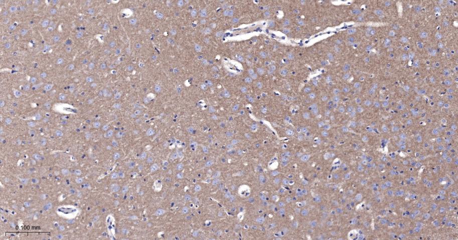 Paraformaldehyde-fixed, paraffin embedded Mouse Cerebrum; Antigen retrieval by boiling in sodium citrate buffer (pH6.0) for 15 min; The section was incubated with CD166 Monoclonal Antibody, Unconjugated (bsm-61678R) at 1:200 overnight at 4°C, followed by conjugation to the bs-0295G-HRP and DAB (C-0010) staining.