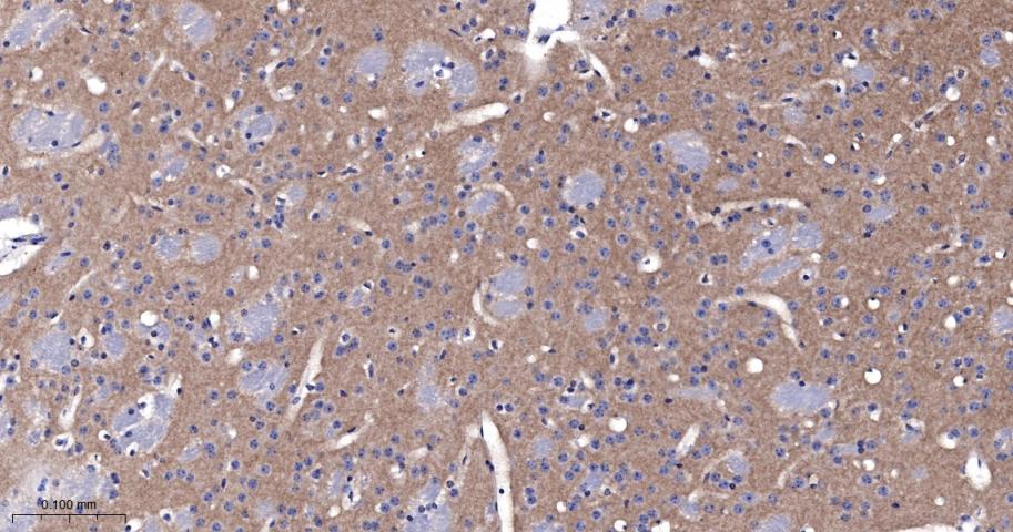 Paraformaldehyde-fixed, paraffin embedded Rat Cerebrum; Antigen retrieval by boiling in sodium citrate buffer (pH6.0) for 15 min; The section was incubated with CD166 Monoclonal Antibody, Unconjugated (bsm-61678R) at 1:200 overnight at 4°C, followed by conjugation to the bs-0295G-HRP and DAB (C-0010) staining.