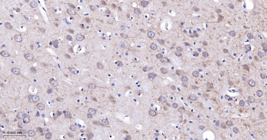 Paraformaldehyde-fixed, paraffin embedded Human Cerebrum; Antigen retrieval by boiling in sodium citrate buffer (pH6.0) for 15 min; The section was incubated with LYRIC Monoclonal Antibody, Unconjugated (bsm-61692R) at 1:200 overnight at 4°C, followed by conjugation to the bs-0295G-HRP and DAB (C-0010) staining.