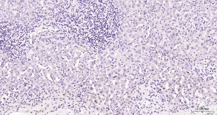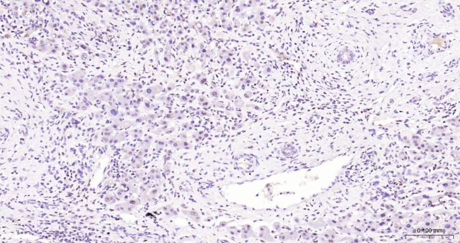 Paraformaldehyde-fixed, paraffin embedded Human liver; Antigen retrieval by boiling in sodium citrate buffer (pH6.0) for 15 min; Antibody incubation with PFKFB3/PFK2 Monoclonal Antibody, Unconjugated(bsm-61693R) at 1:200 overnight at 4°C, followed by conjugation to the bs-0295G-HRP and DAB (C-0010) staining.