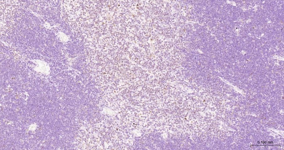 Paraformaldehyde-fixed, paraffin embedded Rat thymus; Antigen retrieval by boiling in sodium citrate buffer (pH6.0) for 15 min; Antibody incubation with PFKFB3/PFK2 Monoclonal Antibody, Unconjugated(bsm-61693R) at 1:200 overnight at 4°C, followed by conjugation to the bs-0295G-HRP and DAB (C-0010) staining.