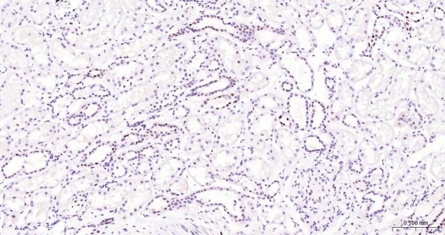 Paraformaldehyde-fixed, paraffin embedded Human kidney; Antigen retrieval by boiling in sodium citrate buffer (pH6.0) for 15 min; Antibody incubation with PFKFB3/PFK2 Monoclonal Antibody, Unconjugated(bsm-61693R) at 1:200 overnight at 4°C, followed by conjugation to the bs-0295G-HRP and DAB (C-0010) staining.