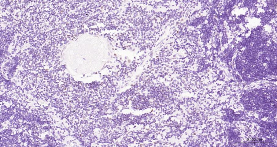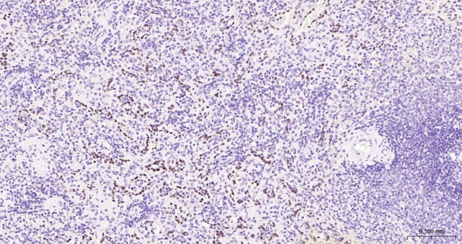 Paraformaldehyde-fixed, paraffin embedded Human spleen; Antigen retrieval by boiling in sodium citrate buffer (pH6.0) for 15 min; Antibody incubation with PFKFB3/PFK2 Monoclonal Antibody, Unconjugated(bsm-61693R) at 1:200 overnight at 4°C, followed by conjugation to the bs-0295G-HRP and DAB (C-0010) staining.
