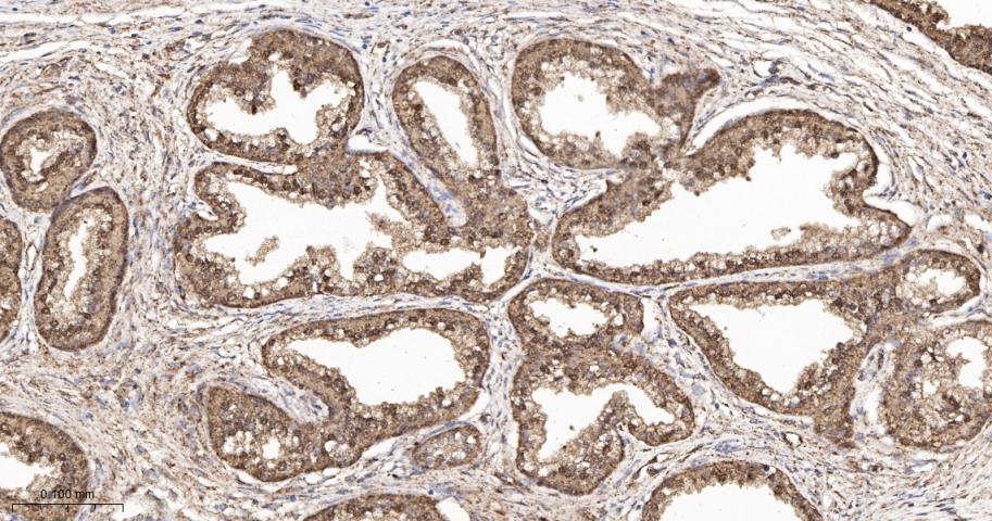 Paraformaldehyde-fixed, paraffin embedded Human Prostate Tumor; Antigen retrieval by boiling in sodium citrate buffer (pH6.0) for 15 min; The section was incubated with CDT2 Monoclonal Antibody, Unconjugated (bsm-61709R) at 1:200 overnight at 4°C, followed by conjugation to the bs-0295G-HRP and DAB (C-0010) staining.