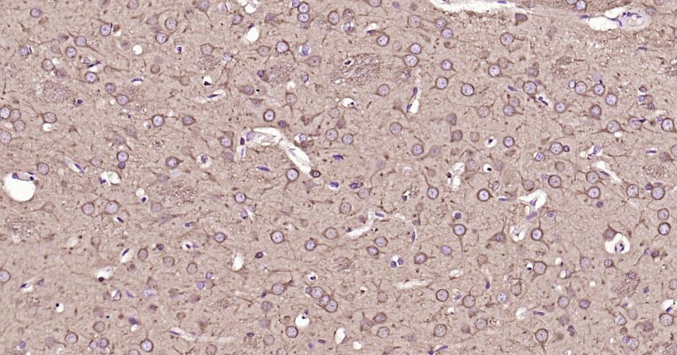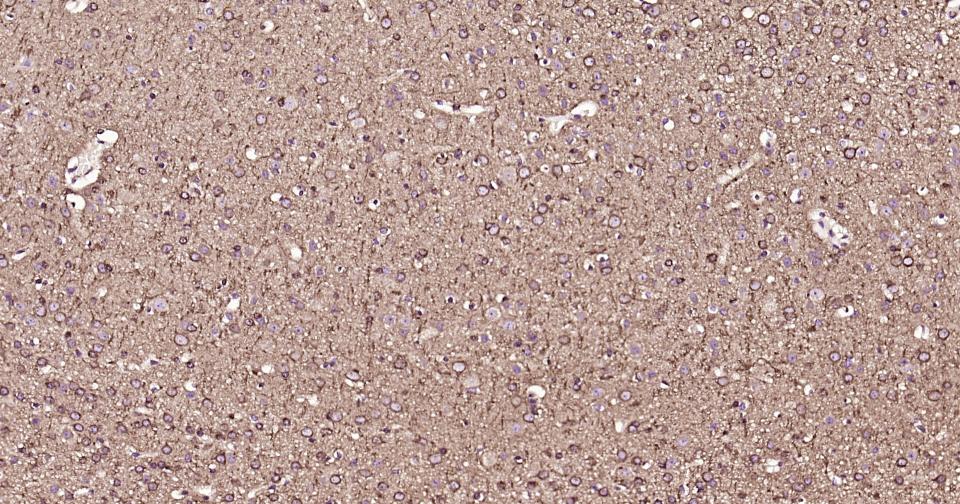 Paraformaldehyde-fixed, paraffin embedded Human Cerebrum; Antigen retrieval by boiling in sodium citrate buffer (pH6.0) for 15 min; Antibody incubation with beta I Tubulin Monoclonal Antibody, Unconjugated(bsm-61710R) at 1:200 overnight at 4°C, followed by conjugation to bs-0295G-HRP and DAB (C-0010) staining.