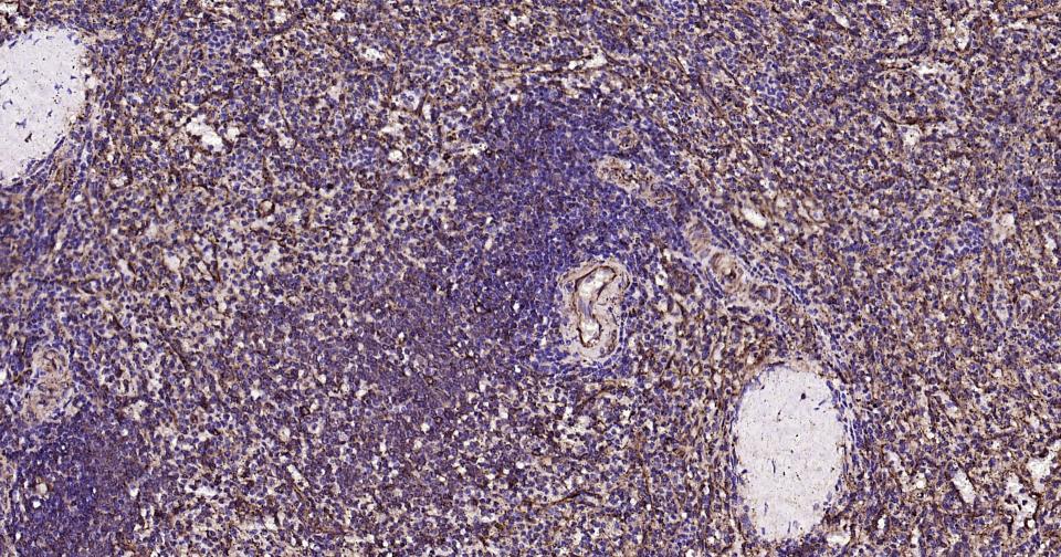 Paraformaldehyde-fixed, paraffin embedded Rat Spleen; Antigen retrieval by boiling in sodium citrate buffer (pH6.0) for 15 min; Antibody incubation with beta I Tubulin Monoclonal Antibody, Unconjugated(bsm-61710R) at 1:200 overnight at 4°C, followed by conjugation to the bs-0295G-HRP and DAB (C-0010) staining.