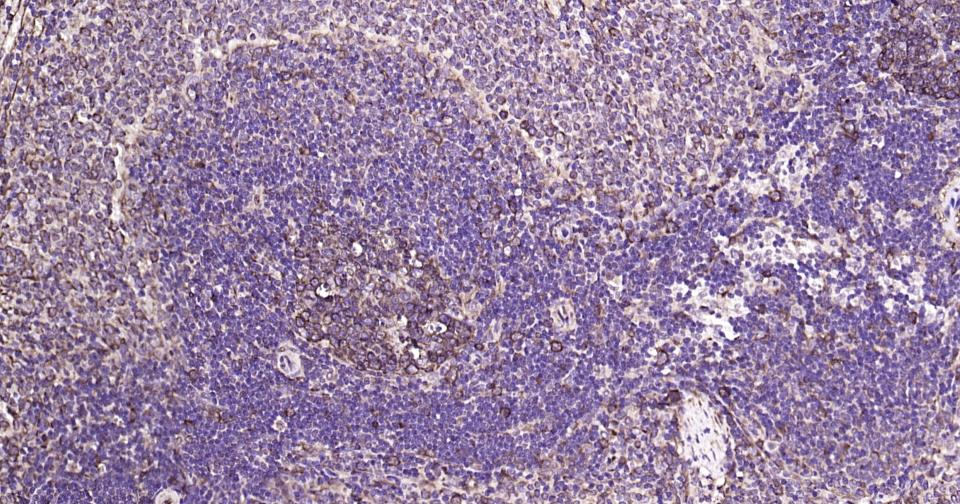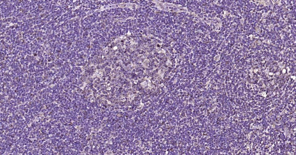 Paraformaldehyde-fixed, paraffin embedded Human Tonsil; Antigen retrieval by boiling in sodium citrate buffer (pH6.0) for 15 min; Antibody incubation with beta I Tubulin Monoclonal Antibody, Unconjugated(bsm-61710R) at 1:200 overnight at 4°C, followed by conjugation to the bs-0295G-HRP and DAB (C-0010) staining.