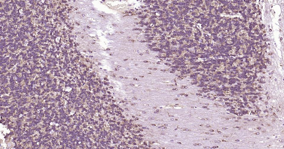 Paraformaldehyde-fixed, paraffin embedded Rat Cerebellum; Antigen retrieval by boiling in sodium citrate buffer (pH6.0) for 15 min; Antibody incubation with beta I Tubulin Monoclonal Antibody, Unconjugated(bsm-61710R) at 1:200 overnight at 4°C, followed by conjugation to the bs-0295G-HRP and DAB (C-0010) staining.