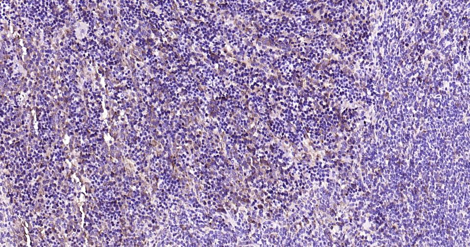 Paraformaldehyde-fixed, paraffin embedded Human Spleen; Antigen retrieval by boiling in sodium citrate buffer (pH6.0) for 15 min; Antibody incubation with beta I Tubulin Monoclonal Antibody, Unconjugated(bsm-61710R) at 1:200 overnight at 4°C, followed by conjugation to the bs-0295G-HRP and DAB (C-0010) staining.