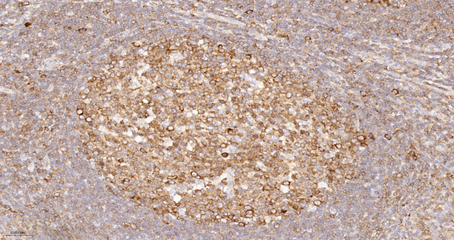 Paraformaldehyde-fixed, paraffin embedded Human Tonsil; Antigen retrieval by boiling in sodium citrate buffer (pH6.0) for 15 min; The section was incubated with phospho-EIF4B (Ser406) Monoclonal Antibody, Unconjugated (bsm-62634R) at 1:200 overnight at 4°C, followed by conjugation to the bs-0295G-HRP and DAB (C-0010) staining.