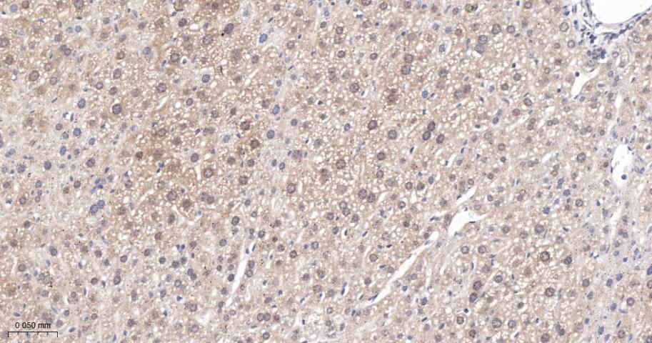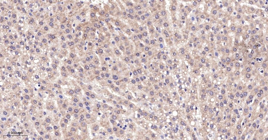 Paraformaldehyde-fixed, paraffin embedded Mouse Liver; Antigen retrieval by boiling in sodium citrate buffer (pH6.0) for 15 min; The section was incubated with RPS6KB2 Monoclonal Antibody, Unconjugated (bsm-62972R) at 1:200 overnight at 4°C, followed by conjugation to the bs-0295G-HRP and DAB (C-0010) staining.