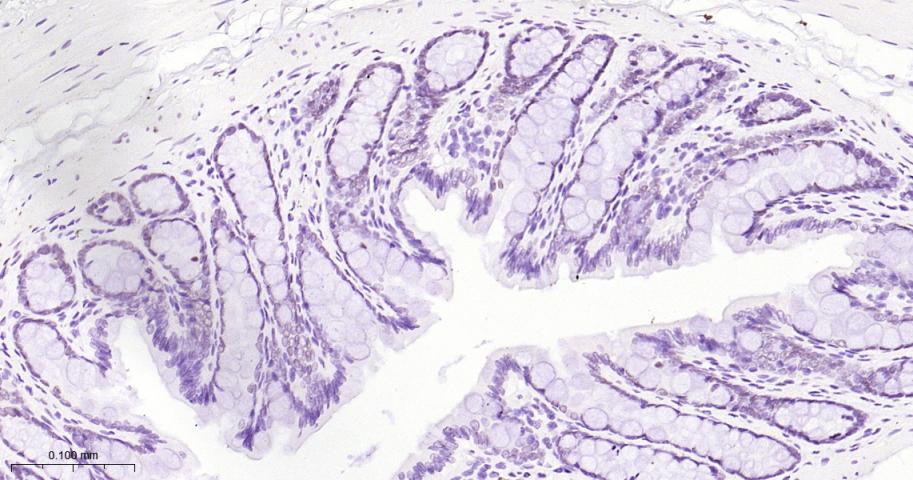 Paraformaldehyde-fixed, paraffin embedded Mouse Colon; Antigen retrieval by boiling in sodium citrate buffer (pH6.0) for 15 min; Antibody incubation with SATB2 Monoclonal Antibody, Unconjugated(bsm-62976R) at 1:200 overnight at 4°C, followed by conjugation to the bs-0295G-HRP and DAB (C-0010) staining.