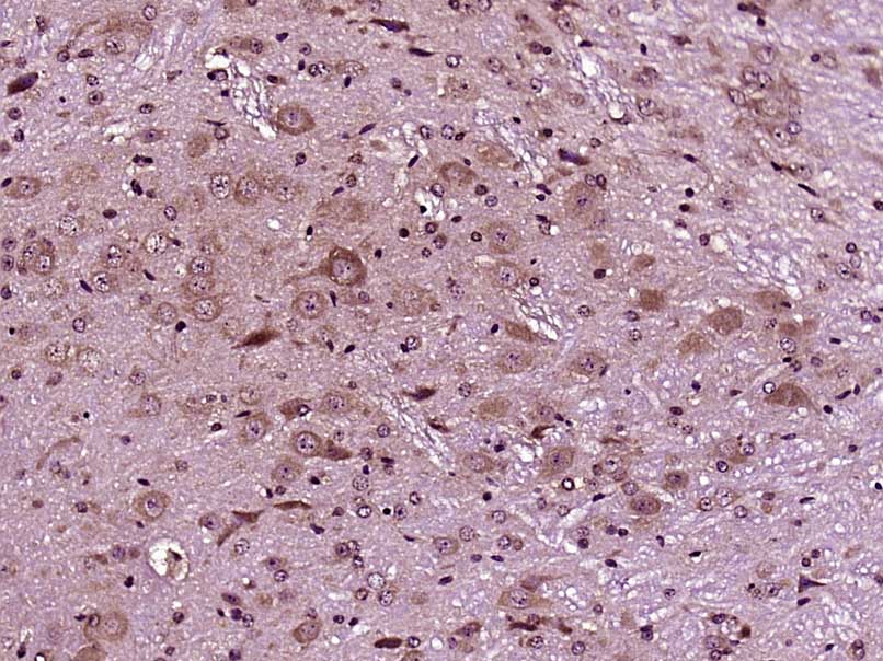 Paraformaldehyde-fixed, paraffin embedded (Mouse brain); Antigen retrieval by boiling in sodium citrate buffer (pH6.0) for 15min; Block endogenous peroxidase by 3% hydrogen peroxide for 20 minutes; Blocking buffer (normal goat serum) at 37°C for 30min; Antibody incubation with (DR3) Polyclonal Antibody, Unconjugated (bs-0421R) at 1:400 overnight at 4°C, followed by operating according to SP Kit(Rabbit) (sp-0023) instructionsand DAB staining.