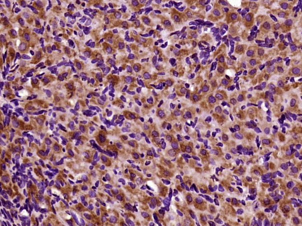 Paraformaldehyde-fixed, paraffin embedded (Rat ovary); Antigen retrieval by boiling in sodium citrate buffer (pH6.0) for 15min; Block endogenous peroxidase by 3% hydrogen peroxide for 20 minutes; Blocking buffer (normal goat serum) at 37°C for 30min; Antibody incubation with (TOP2A) Polyclonal Antibody, Unconjugated (bs-1203R) at 1:400 overnight at 4°C, followed by a conjugated secondary antibody (sp-0023) for 20 minutes and DAB staining.