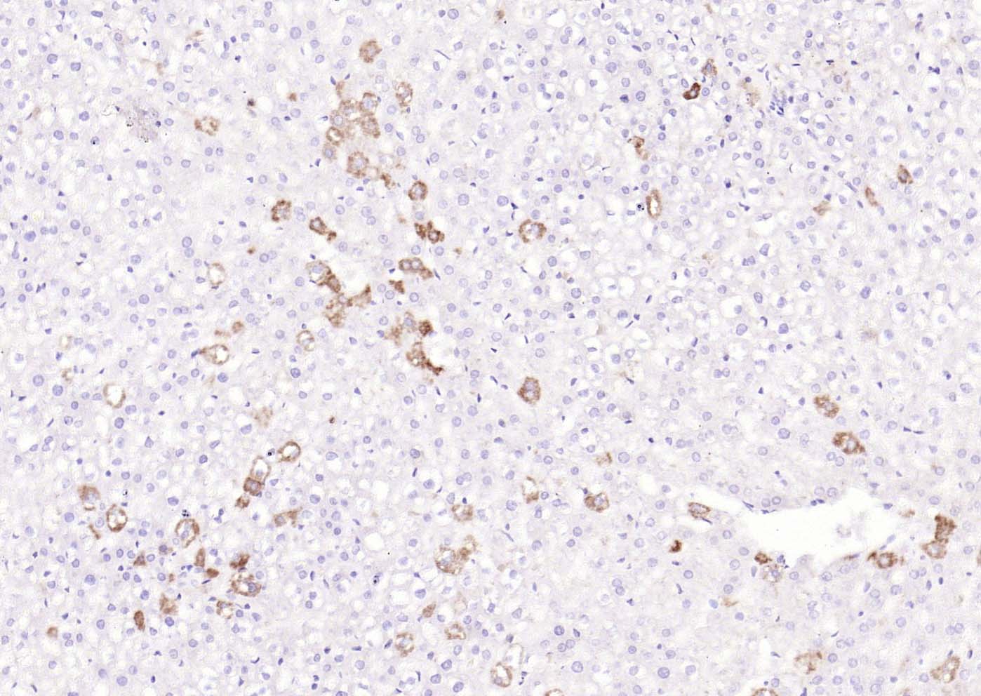 Paraformaldehyde-fixed, paraffin embedded (rat liver); Antigen retrieval by boiling in sodium citrate buffer (pH6.0) for 15min; Block endogenous peroxidase by 3% hydrogen peroxide for 20 minutes; Blocking buffer (normal goat serum) at 37°C for 30min; Antibody incubation with (IL-5) Polyclonal Antibody, Unconjugated (bs-1318R) at 1:200 overnight at 4°C, followed by operating according to SP Kit(Rabbit) (sp-0023) instructionsand DAB staining.
