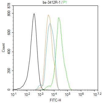 Primary Antibody (green line): Rabbit Anti-phospho-SHC1 (Tyr427) antibody (bs-3412R)