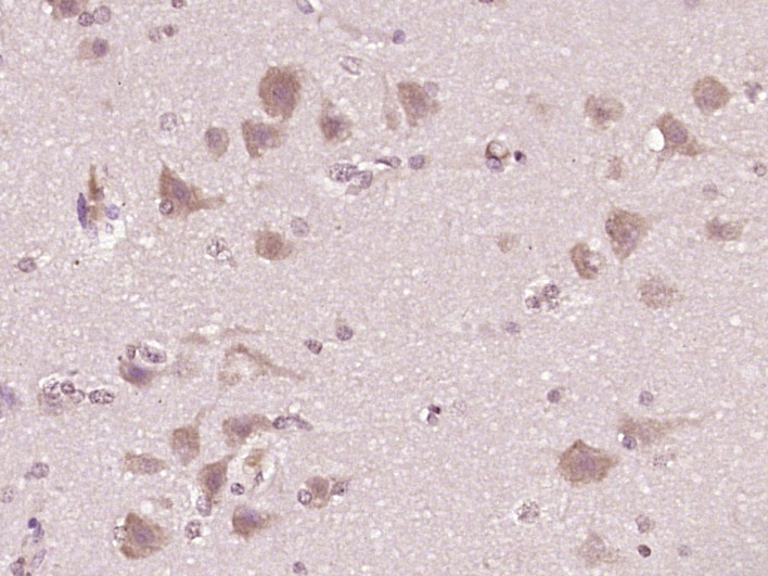 Paraformaldehyde-fixed, paraffin embedded (human brain glioma); Antigen retrieval by boiling in sodium citrate buffer (pH6.0) for 15min; Block endogenous peroxidase by 3% hydrogen peroxide for 20 minutes; Blocking buffer (normal goat serum) at 37°C for 30min; Antibody incubation with (SHC (Tyr427)) Polyclonal Antibody, Unconjugated (bs-3412R) at 1:400 overnight at 4°C, followed by operating according to SP Kit(Rabbit) (sp-0023) instructionsand DAB staining.