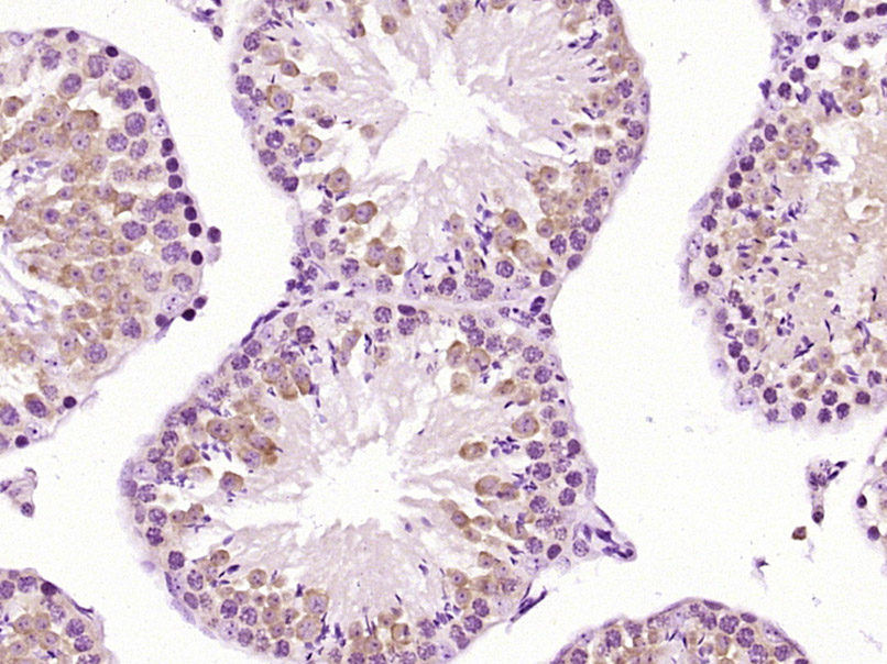 Paraformaldehyde-fixed, paraffin embedded (Mouse testis); Antigen retrieval by boiling in sodium citrate buffer (pH6.0) for 15min; Block endogenous peroxidase by 3% hydrogen peroxide for 20 minutes; Blocking buffer (normal goat serum) at 37°C for 30min; Antibody incubation with (PABP) Polyclonal Antibody, Unconjugated (bs-3833R) at 1:400 overnight at 4°C, followed by operating according to SP Kit(Rabbit) (sp-0023) instructionsand DAB staining.